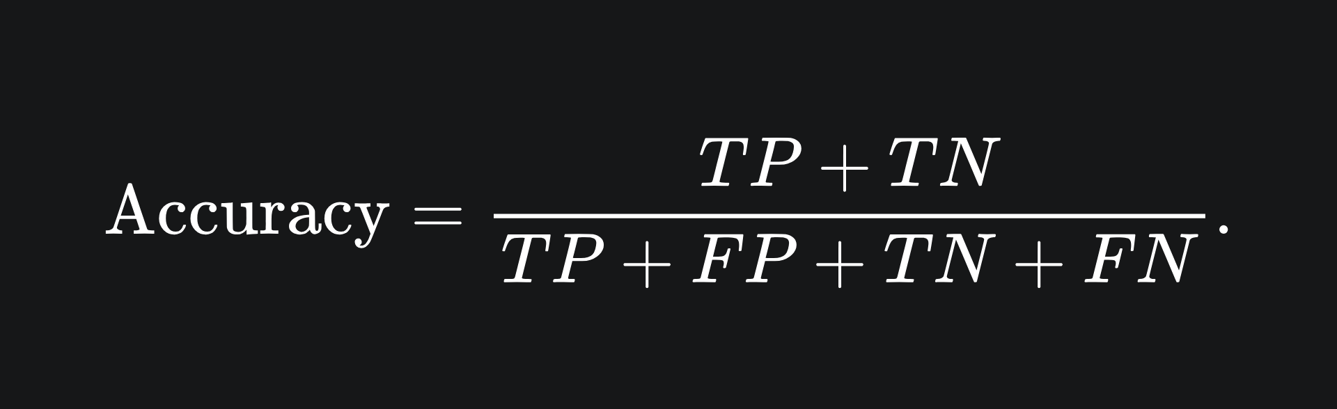 Accuracy tells you the proportion of data points that were correctly classified by the model. This metric is not well-suited to datasets containing class imbalance.