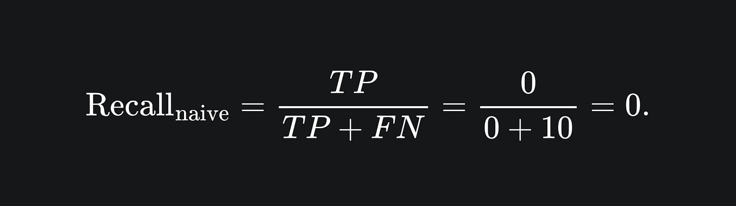 Let’s see what the recall of the naive classifier looks like:
