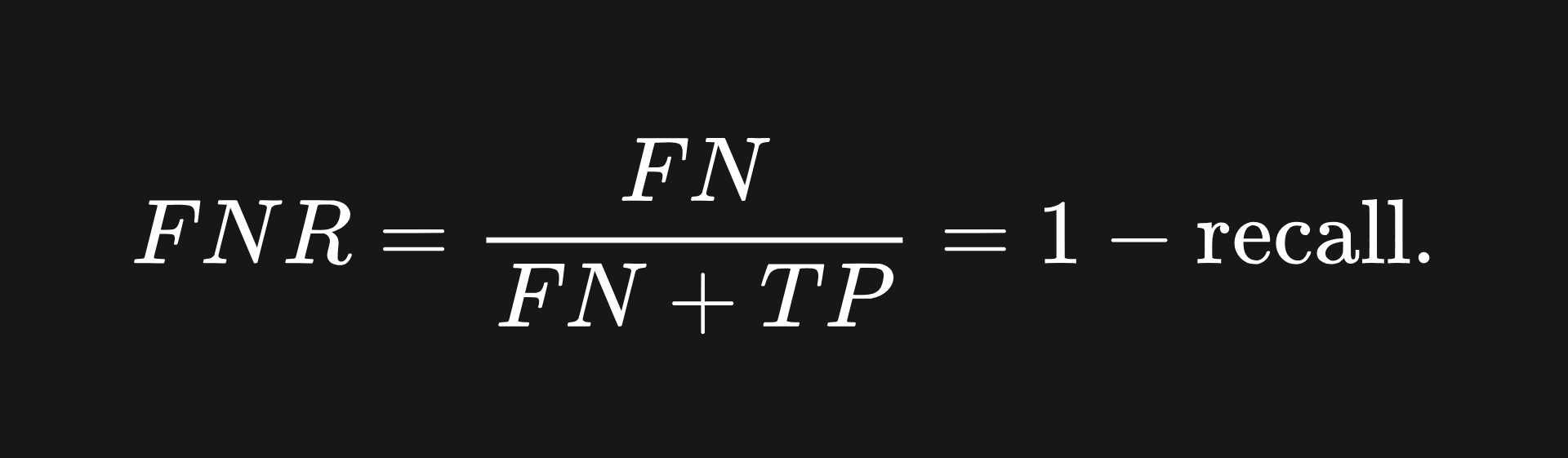 ❓ False Negative Rate: the proportion of actual positive data points that were incorrectly labelled as negative: