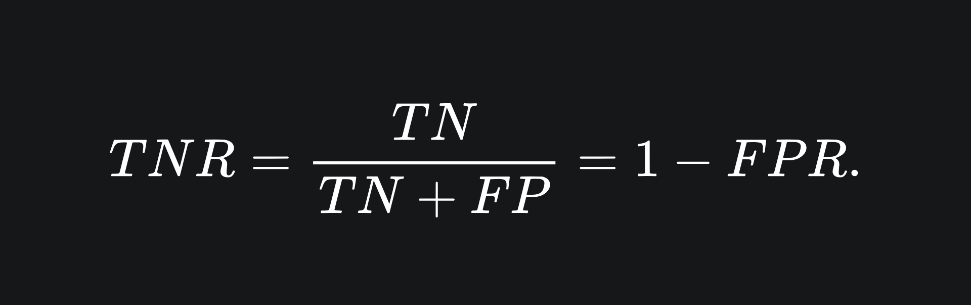 ❓ True Negative Rate: the proportion of negative data points that are correctly predicted as negative: