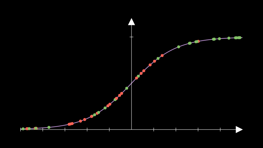 Suppose we have built a logistic regression model that classifies the points above the threshold as green and below the threshold as red: