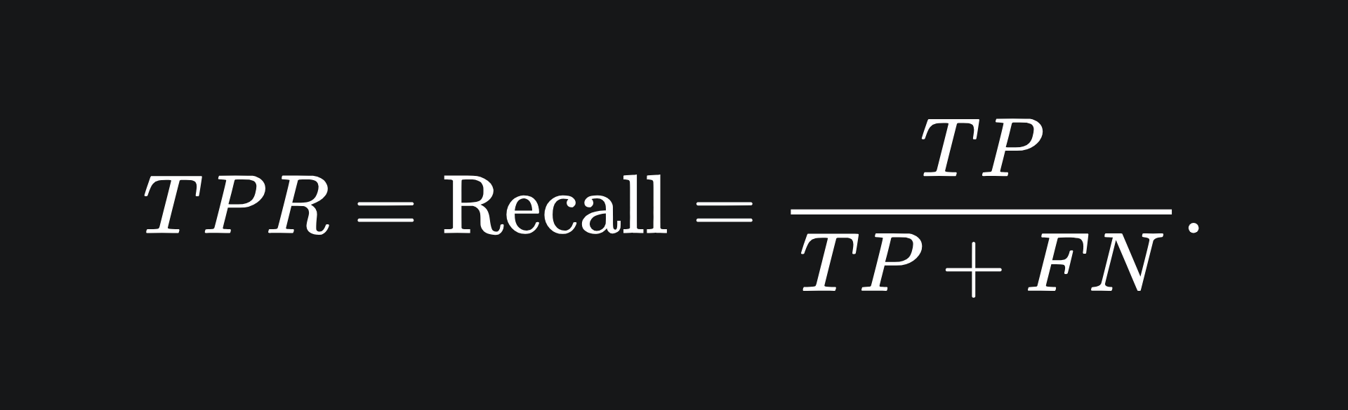 ❓ True Positive Rate: this is the same as recall, which we discussed last week: